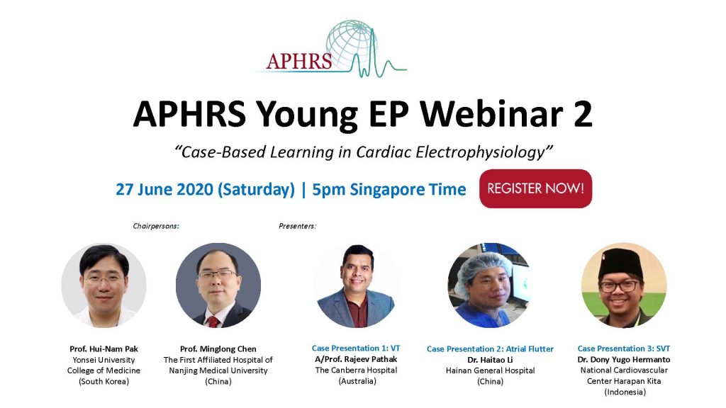 Following A/Prof. Rajeev Pathak’s successful webinar presentation held on the 20th of June 2020, APHRS will be hosting their second Young EP Webinar as a part of their free online webinar series. The webinar to be held on the 27th of June 2020, focuses on case-based learning in electrophysiology.